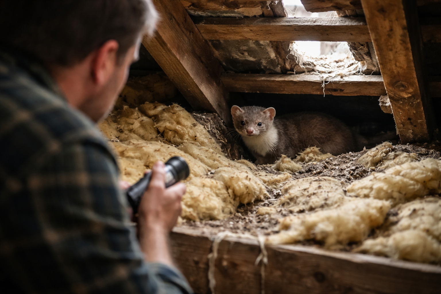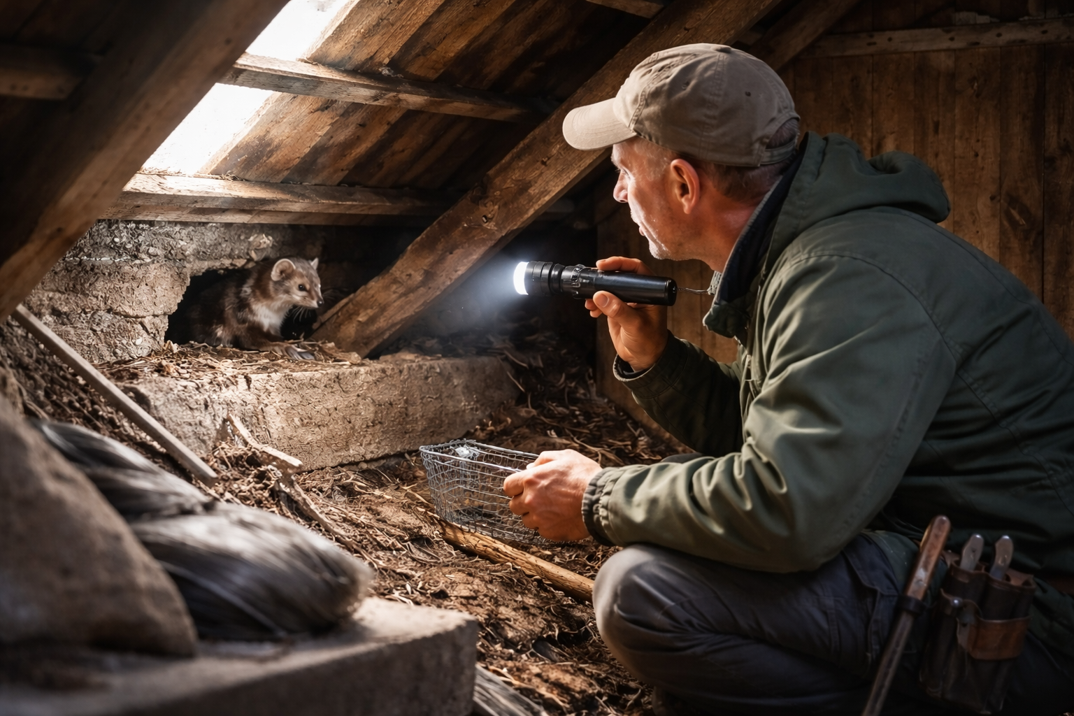 Det første skridt er altid at identificere dyret. Ser du et dyr med mørk maske og kort hale, er det sandsynligvis en ilder, som du skal lade være i fred, da den er beskyttet af loven. Er det en brun, busket hale uden maske og med karakteristisk natlig aktivitet på loftet, er det sikkert en husmår. Her kan du med fordel vælge forebyggende løsninger som Mårstop for at holde dyret ude af huset, så du får fred uden at forstyrre den lokale fauna.