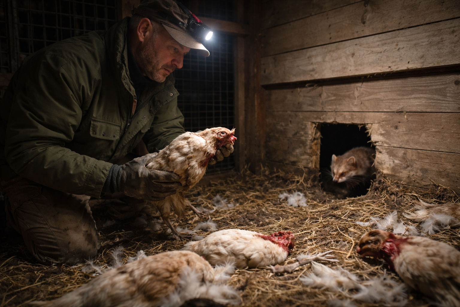 Nogle aftener sænker mørket sig fredeligt over haven, og hønsehuset summer roligt af liv. Men mange hobbyhønseholdere mærker alligevel uroen ligge lavt under overfladen. Klapren i hønsegitteret bliver til en nagende frygt, hvis man før har set resterne af et mårangreb: fjer spredt ud over jorden, og flere høns, der på én enkelt nat er blevet dræbt. For mange føles mårens natlige besøg som en kamp for at beskytte både flokken og roen derhjemme.