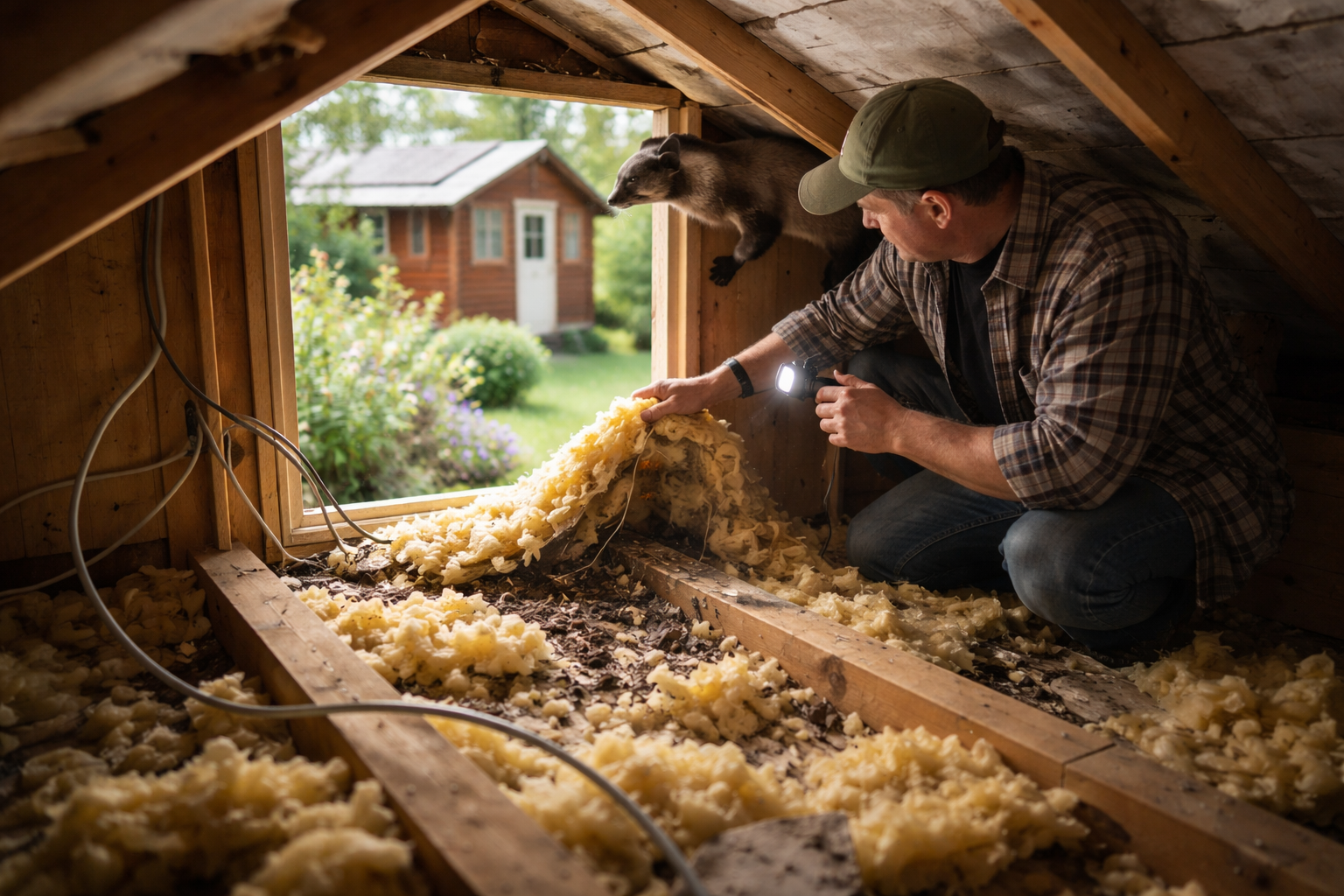 Oppe under taget afslører kolonihavehuset snart sporene efter mårens nattevandring. Bunker af flyttet isolering, mørke ekskrementer og en gennemtrængende lugt af urin er tydelige beviser. Lugten trænger sig hurtigt ned, og gnavespor på ledninger eller små huller i tagkonstruktionen vidner om, at indtrængeren har været kreativ. Jo før du opdager tegnene, jo lettere er det at stoppe problemerne, før de vokser sig store.